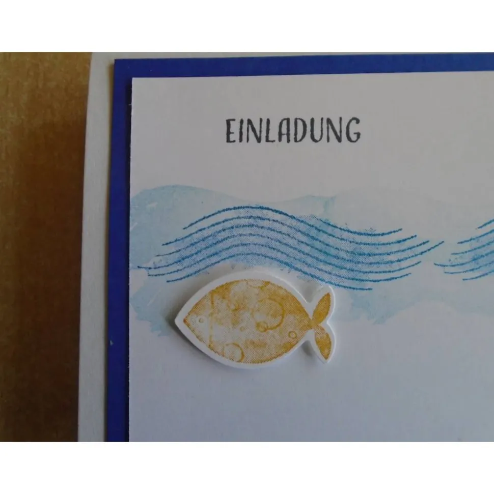 Hier seht ihr eine schöne Einladungskarte zur Konfirmation für einen Jungen oder ein Mädchen mit Fische..