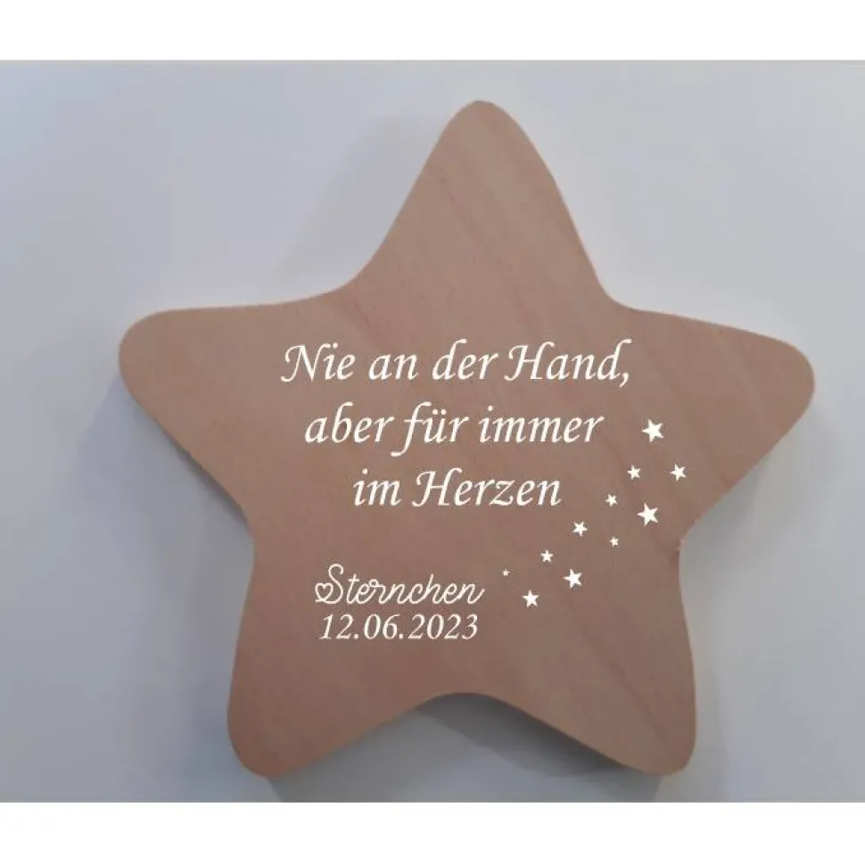 Dein Stern wird von uns aus Leimholz in der Größe ca. 17 x 17 cm gefertigt.