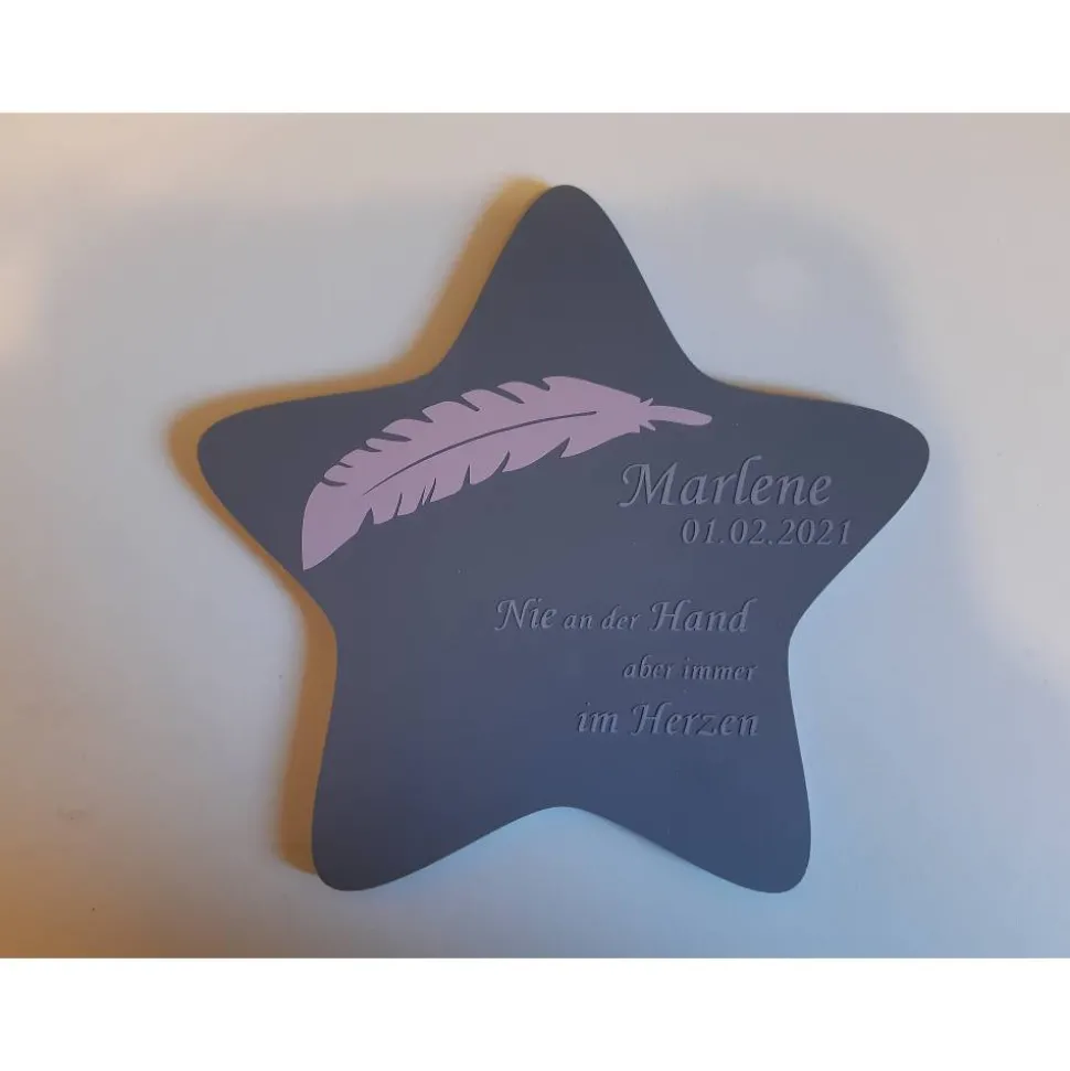 Dein Stern wird von uns aus einem wetterfestem Material (ähnlich Hartplastik) in der Größe ca. 17 x 17 cm gefertigt.