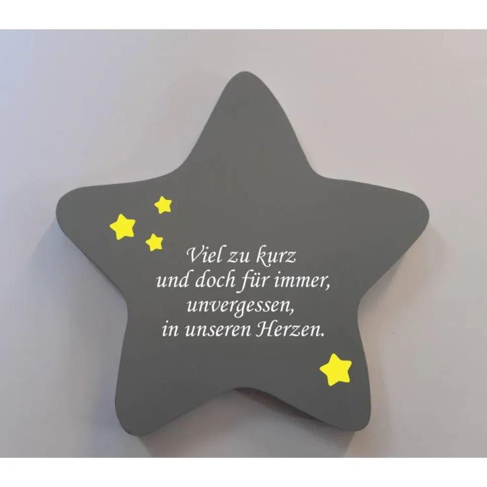 Dein Stern wird von uns aus einem wetterfestem Material (ähnlich Hartplastik) in der Größe ca. 17 x 17 cm gefertigt.