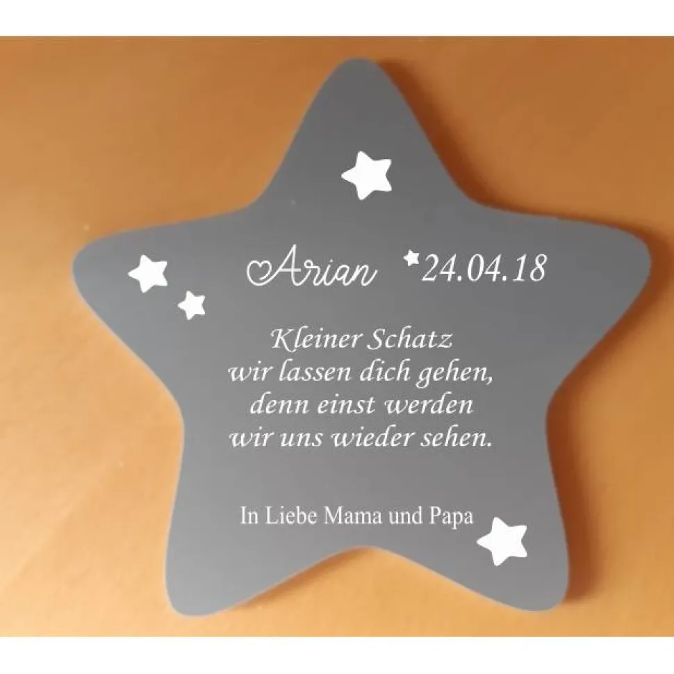 Dein Stern wird von uns aus einem wetterfestem Material (ähnlich Hartplastik) in der Größe ca. 17 x 17 cm gefertigt.