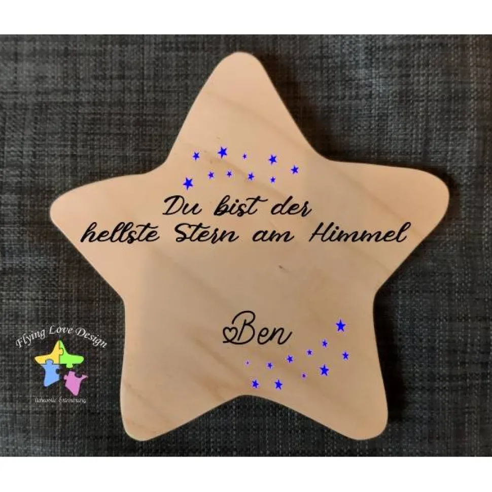 Dein Stern wird von uns aus Leimholz in der Größe ca. 17 x 17 cm gefertigt.