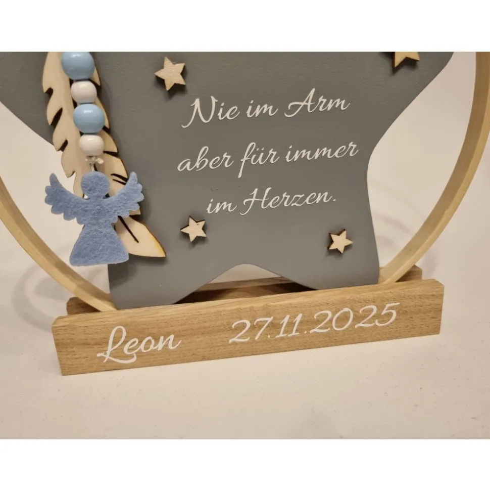 – mit Wunschnamen und Datum auf dem Sockel