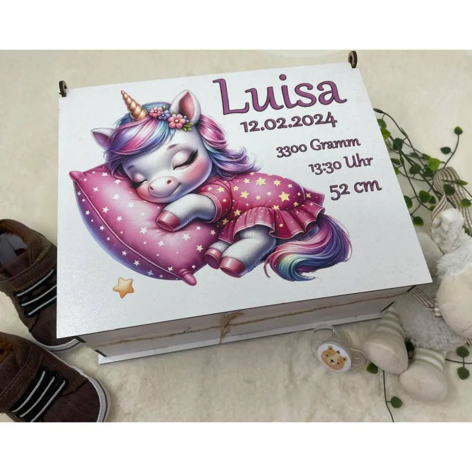 Erinnerungsbox für Baby, Erinnerungskiste, personalisierte Erinnerungskiste, Baby Geschenk personalisiert Einhorn