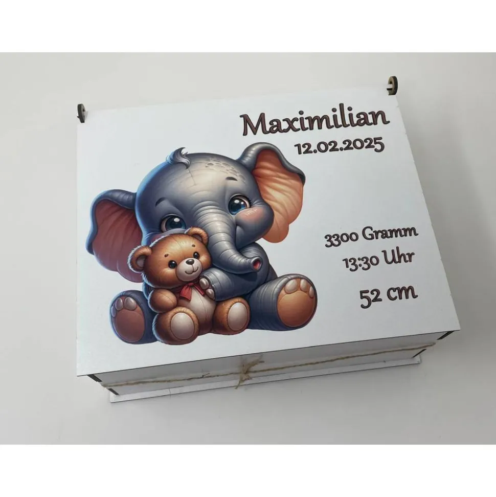 Erinnerungsbox für Baby, Erinnerungskiste, personalisierte Erinnerungskiste, Baby Geschenk personalisiert elefant