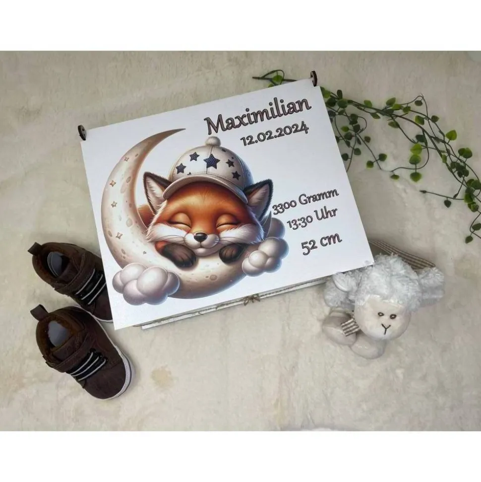 Erinnerungsbox für Baby, Erinnerungskiste, personalisierte Erinnerungskiste, Baby Geschenk personalisiert Fuchs