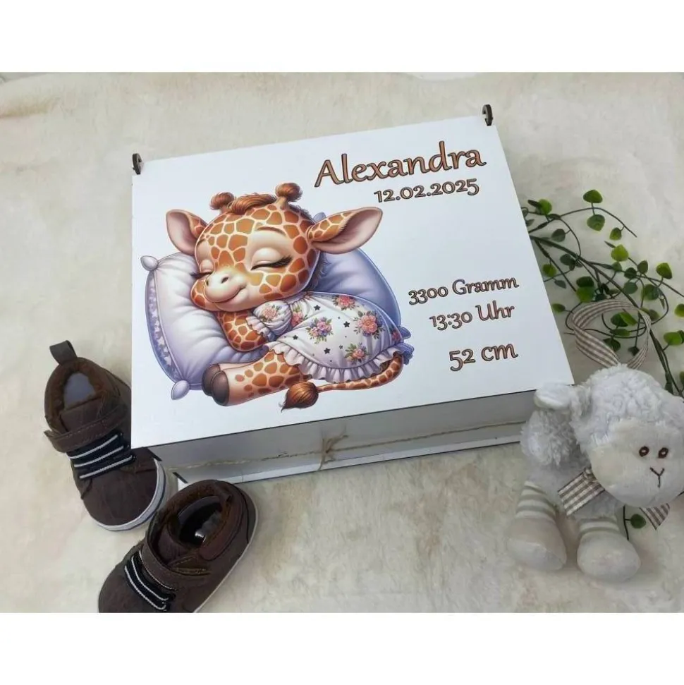 Erinnerungsbox für Baby, Erinnerungskiste, personalisierte Erinnerungskiste, Baby Geschenk personalisiert giraffe k