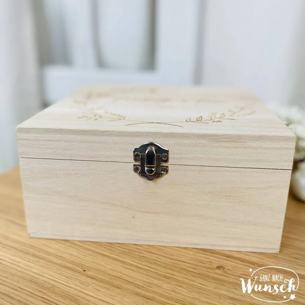 Das gelingt besonders gut mit dieser tollen personalisierten Erinnerungskiste aus Holz mit Verschluss