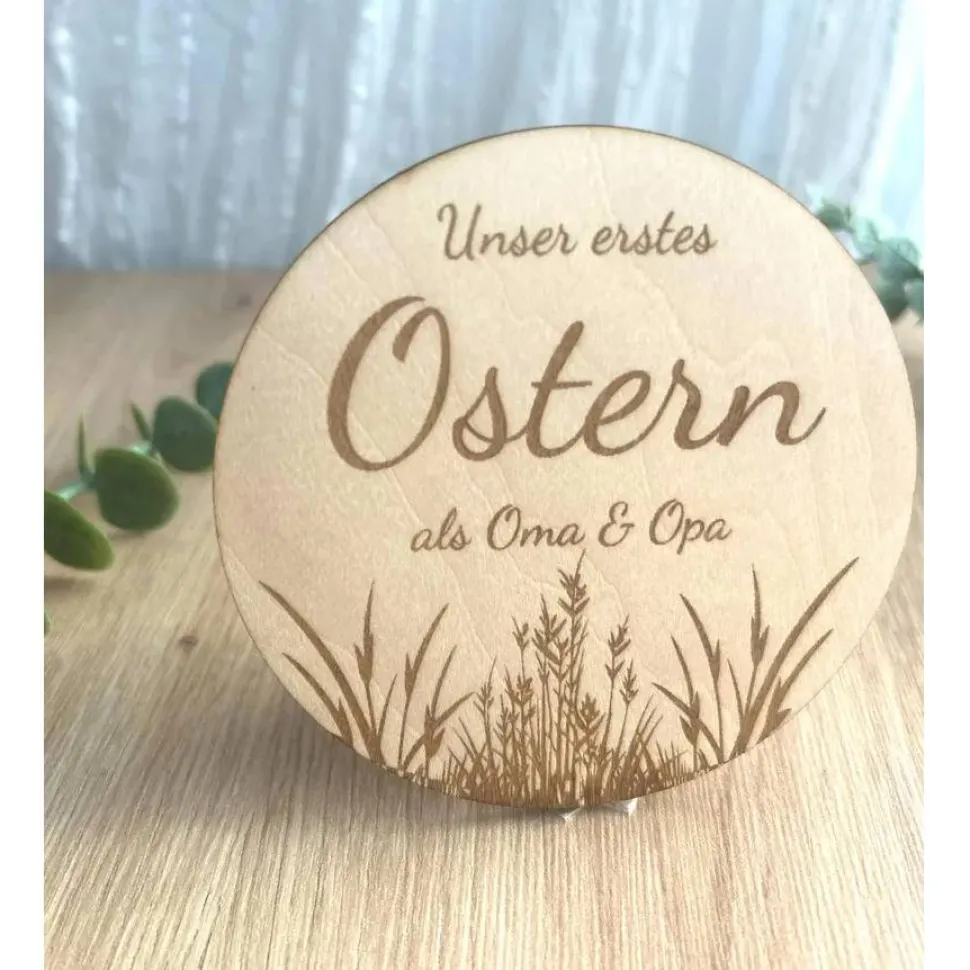 Du hast die Möglichkeit, die Holzkarte für dein ganz individuelles Familienkonzept anpassen lassen. So lässt sie sich zum Beispiel mit der Aufschrift „Unser erstes Ostern als Eltern“ oder „Mein erstes Ostern als Opa“ anpassen. Teile uns deinen Wunsch gerne einfach im Personalisierungsfeld mit.
