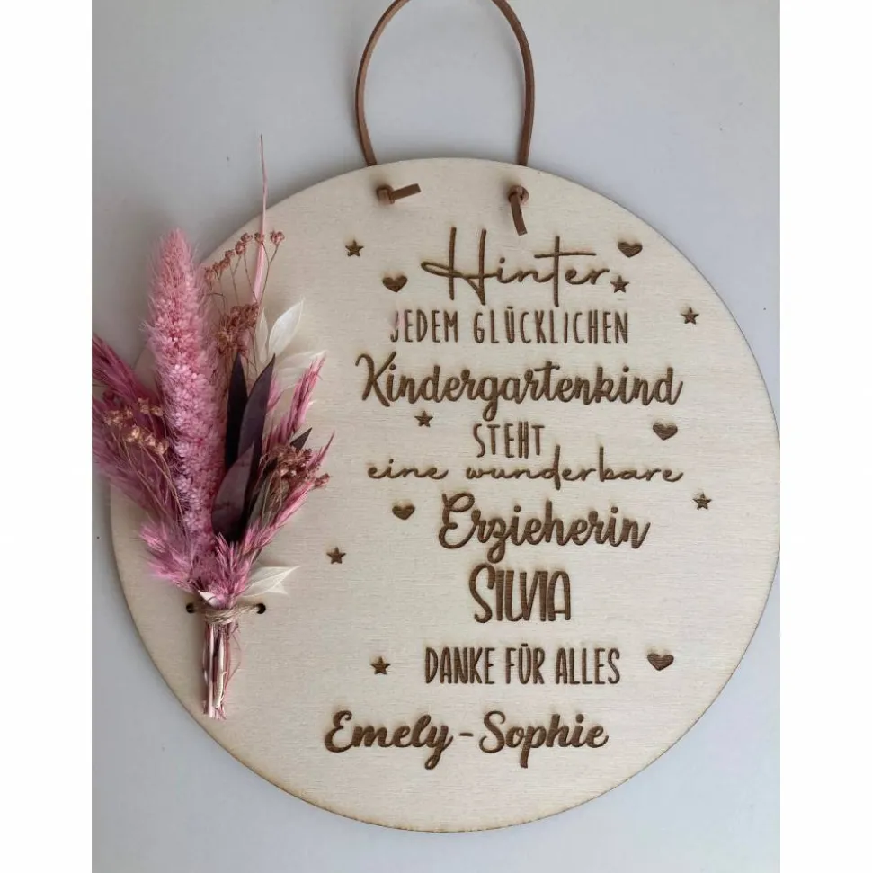 Erzieher / in, Lehrer / in Geschenk zum Abschied Holzscheibe personalisierbar – mit Trockenblumen