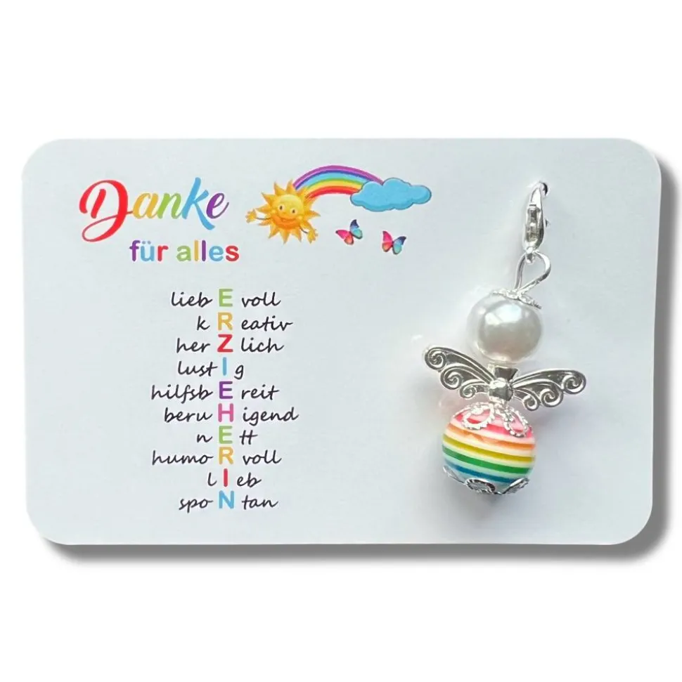 Mit dem Karabinerhaken ist dieses Engelchen fast überall zu befestigen