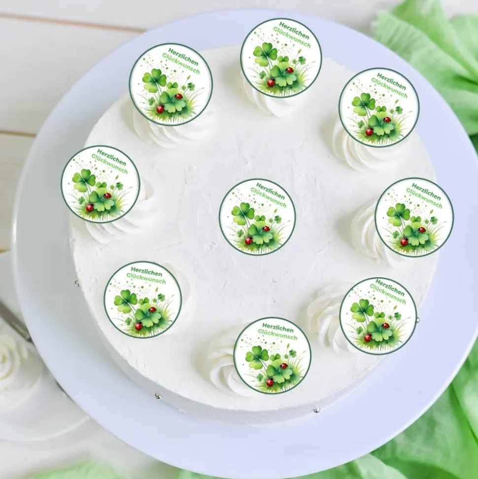 Verleihen Sie Ihren Backkreationen eine persönliche Note mit den Muffinauflegern „Herzlichen Glückwunsch – Kleeblatt“
