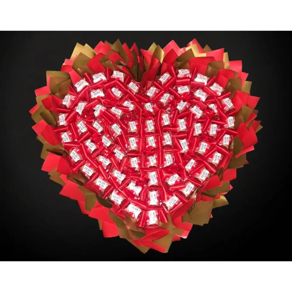 Majestätischer Herz-Genussstrauß mit Mon Cheri