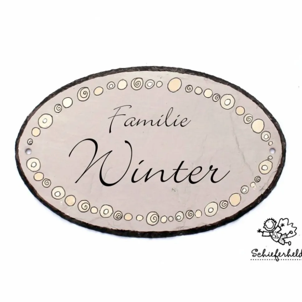 Entdecke das perfekte Hochzeitsgeschenk: Ein exklusives, ovales Haustürschild aus hochwertigem Naturschiefer, das Du individuell mit Namen, Wunschtext oder Hausnummer personalisieren kannst. Dieses einzigartige Familienschild wird liebevoll handgefertigt, ist wetterfest und überzeugt durch seine langlebige, edle Optik.