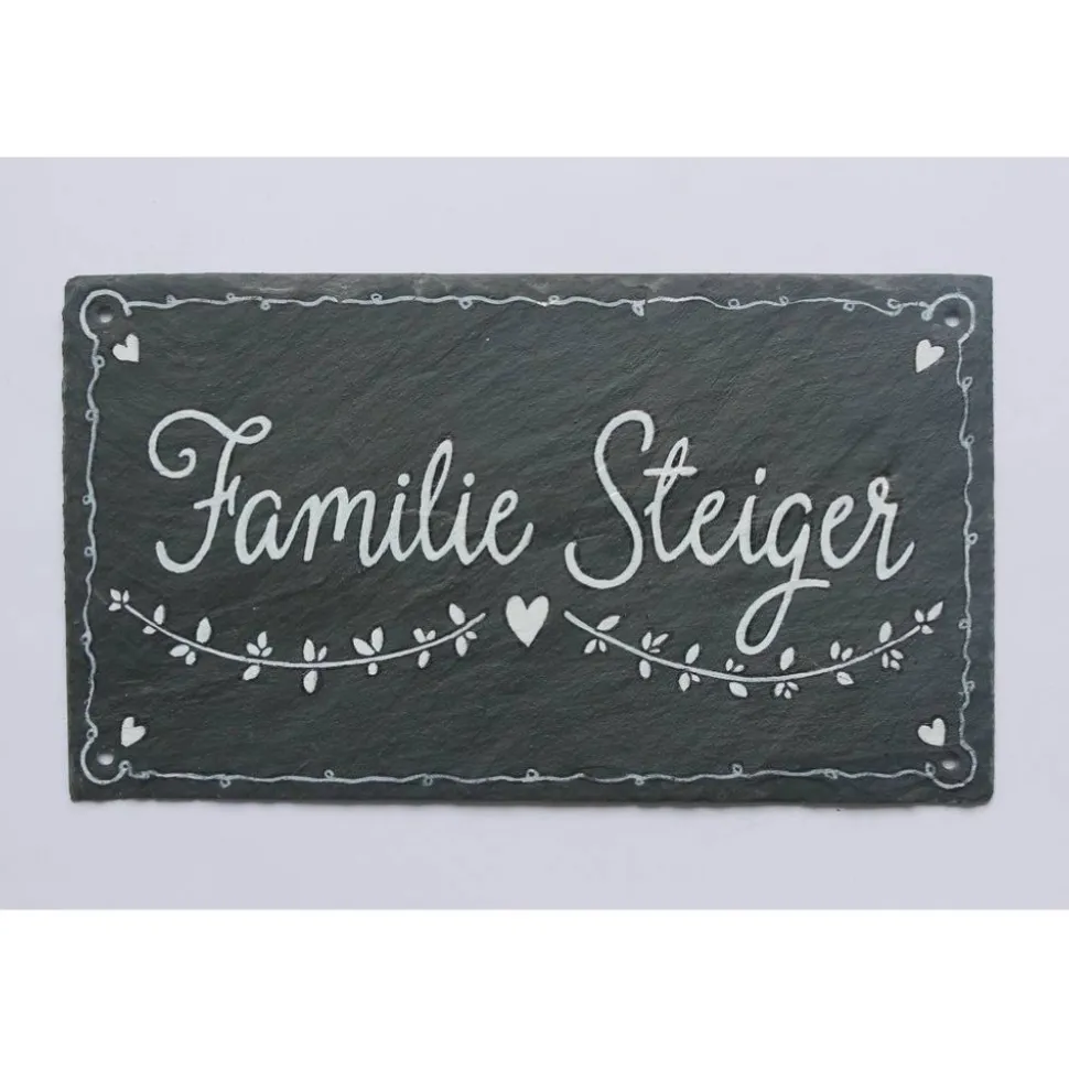 Das Schieferschild ist wetterfest, handbeschriftet und wird in Deiner Wunschgröße geliefert: 17 x 30 cm (andere Abmessungen auf Wunsch möglich). Wähle zwischen 2 Bohrungen mit Aufhängekordel oder 4 Bohrungen zur Wandmontage. Das Namensschild ist nicht nur zur Hochzeit, sondern auch für Geburt, Geburtstag, Umzug, Einzug, Weihnachten, Ostern, Wohnungseinweihung, Richtfest oder Muttertag/Vatertag beliebt.