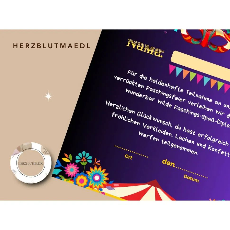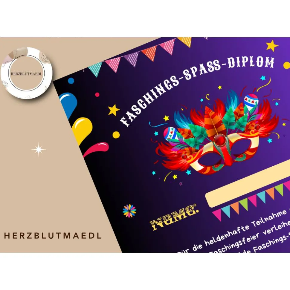Mit diesen persönlichen Urkunden werden die Kids stolz ihre „Faschings“-Auszeichnung präsentieren. Hol sie dir jetzt und mach deine Faschingsparty zu einem unvergesslichen Abenteuer!
