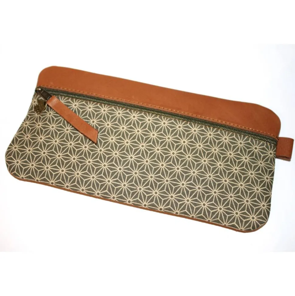 LEDER & JAPANISCHES STOFFDESIGN „Asanoha khaki”