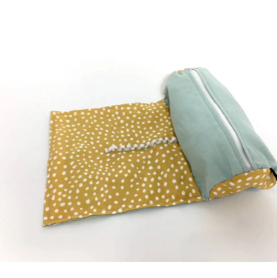 Neben Stiften finden natürlich auch Schminksachen, DIY-Werkzeuge wie Strick & Häkelnadeln Platz. Dank des Gummibands wirst du nie mehr lange suchen müssen und bist perfekt Organisiert mit dem Rollmäppchen aus Stoff.