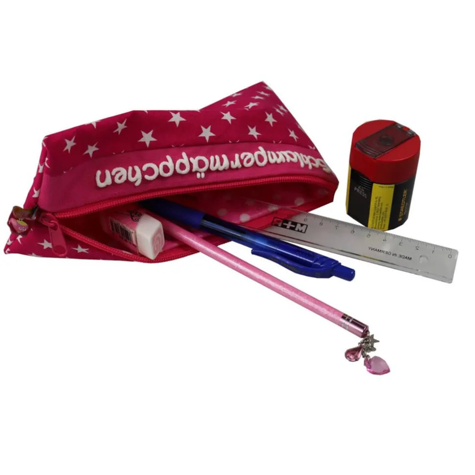 Spätestens zum Schulanfang, ist ein Federmäppchen mit Namen sehr nützlich. Es fasst viele Stifte, den Füller, Radiergummi und Spitzer. Als Geschenk kannst Du unser Federmäppchen mit dem Wunschnamen des Kindes personalisieren. Alternativ kann das hübsche Mäppchen als Sammeltasche für Steine, Aufkleber und vieles mehr verwendet werden.