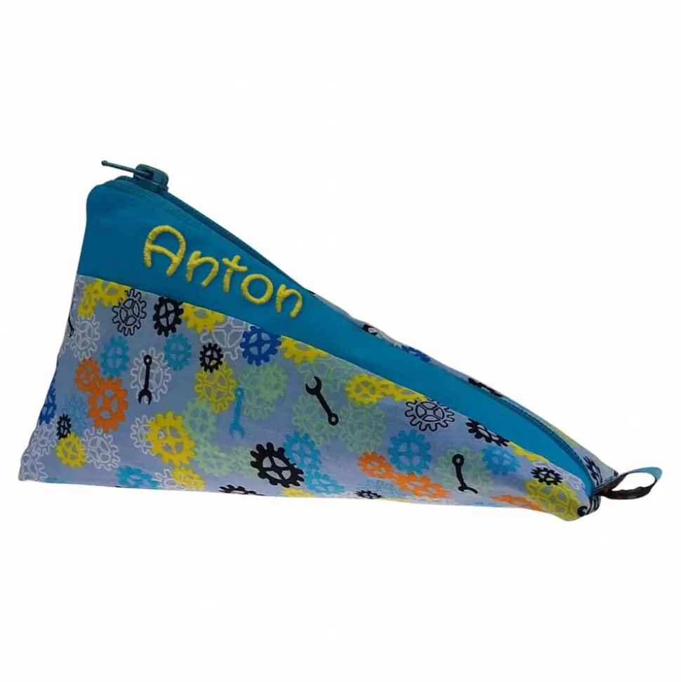 Das Federmäppchen Zahnrad hat Platz für bunte Stifte, den Spitzer und vieles mehr. Alternativ kann das hübsche Mäppchen als Sammeltasche verwendet werden. Es ist innen mit beschichteter Baumwolle ausgestattet und damit abwaschbar! Ein ganz persönliches Geschenk für den Sohn, das Patenkind, dem Schulkind.