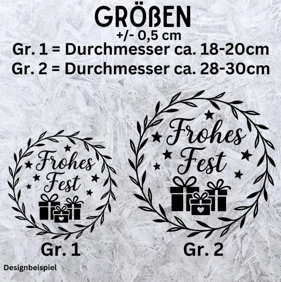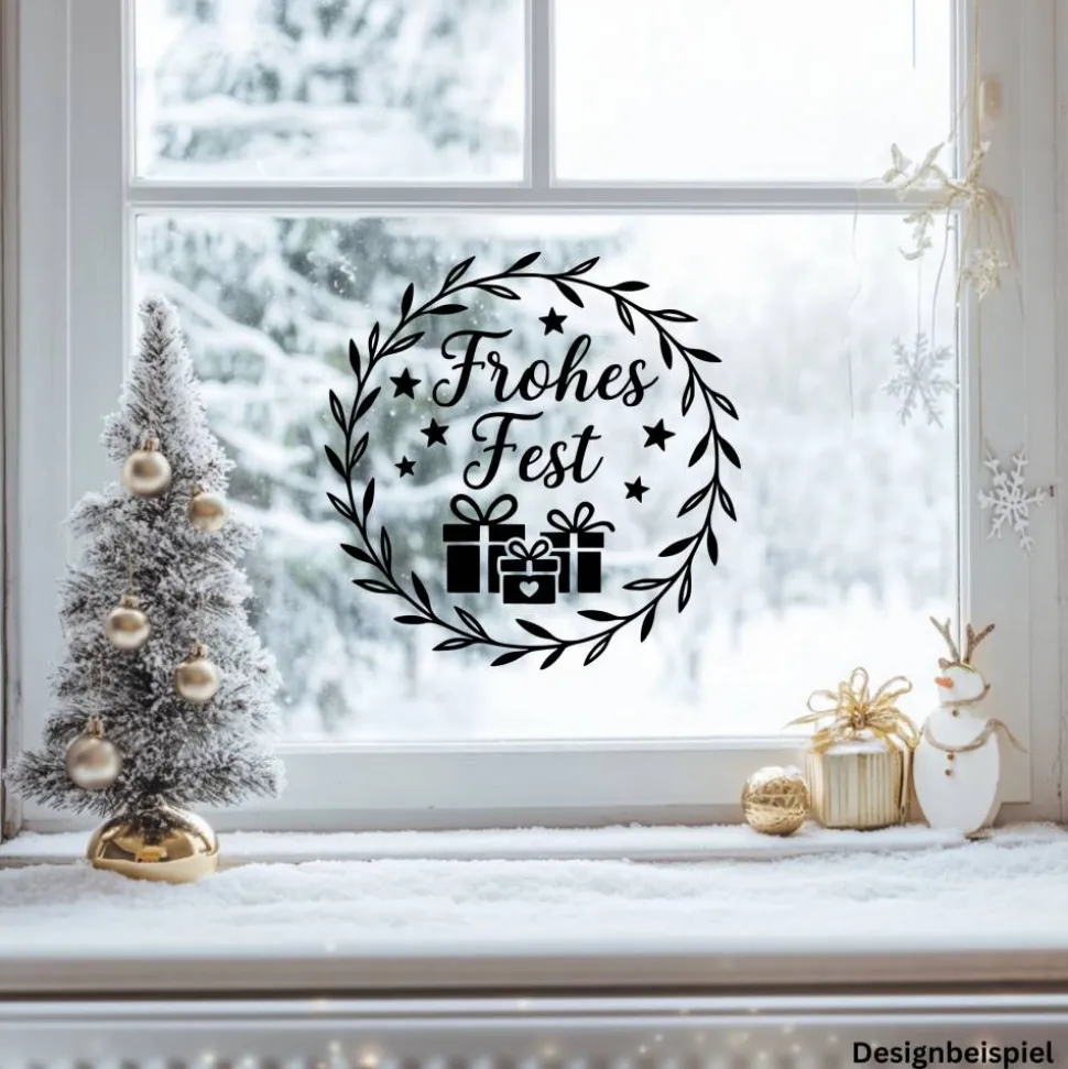 Artikelname: Vinylaufkleber Weihnachtskranz Frohes Fest Geschenke
