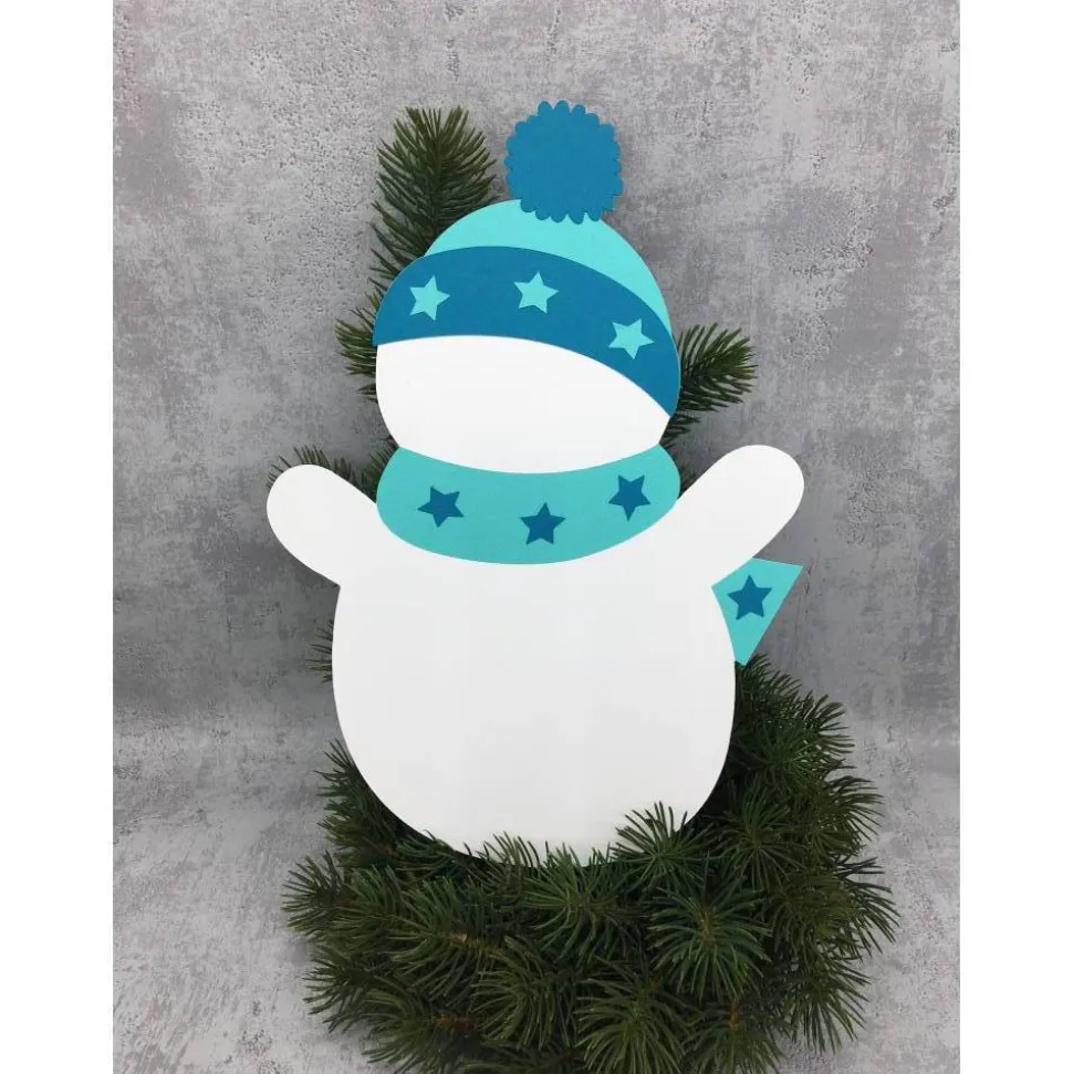 Der Schneemann wurde mit viel Sorgfalt und Liebe zum Detail handgefertigt. Er besteht aus hochwertigem Fotokarton und hat eine Höhe von 28 cm.