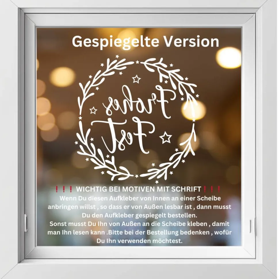 Die Sticker werden per Übertragungsfolie angebracht. Wenn Du den Sticker von Aussen lesbar an einer Scheibe anbringen möchtest , dann musst Du Ihn gespiegelt bestellen , da er sonst nicht von Aussen richtigherum lesbar ist.