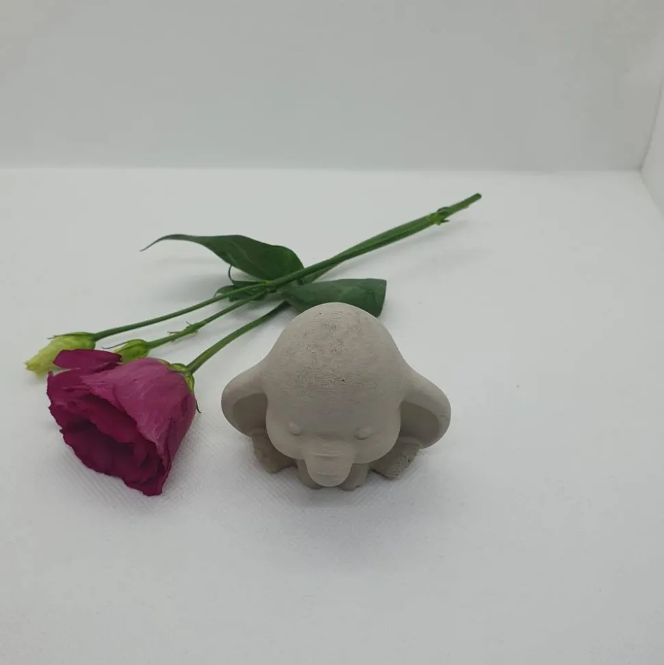 Die kleine Figur Elefant aus Beton wird in liebevoller Handarbeit gegossen und geschliffen.