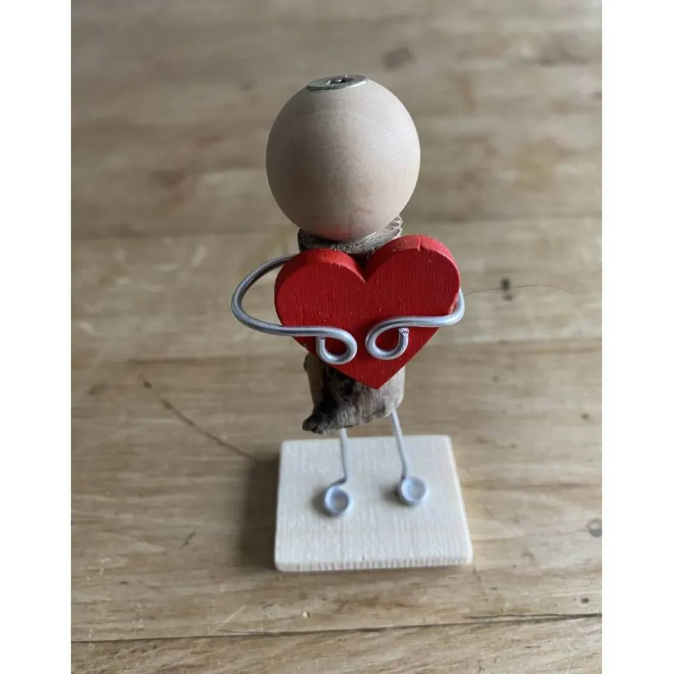 Kleine Figur mit großem Herz aus Treibholz und Draht. Ein kleines Mitbringsel oder Aufmerksamkeit für liebe Menschen. Das ideale Geburtstagsgeschenk oder einfach eine schöne Dekorative Idee.