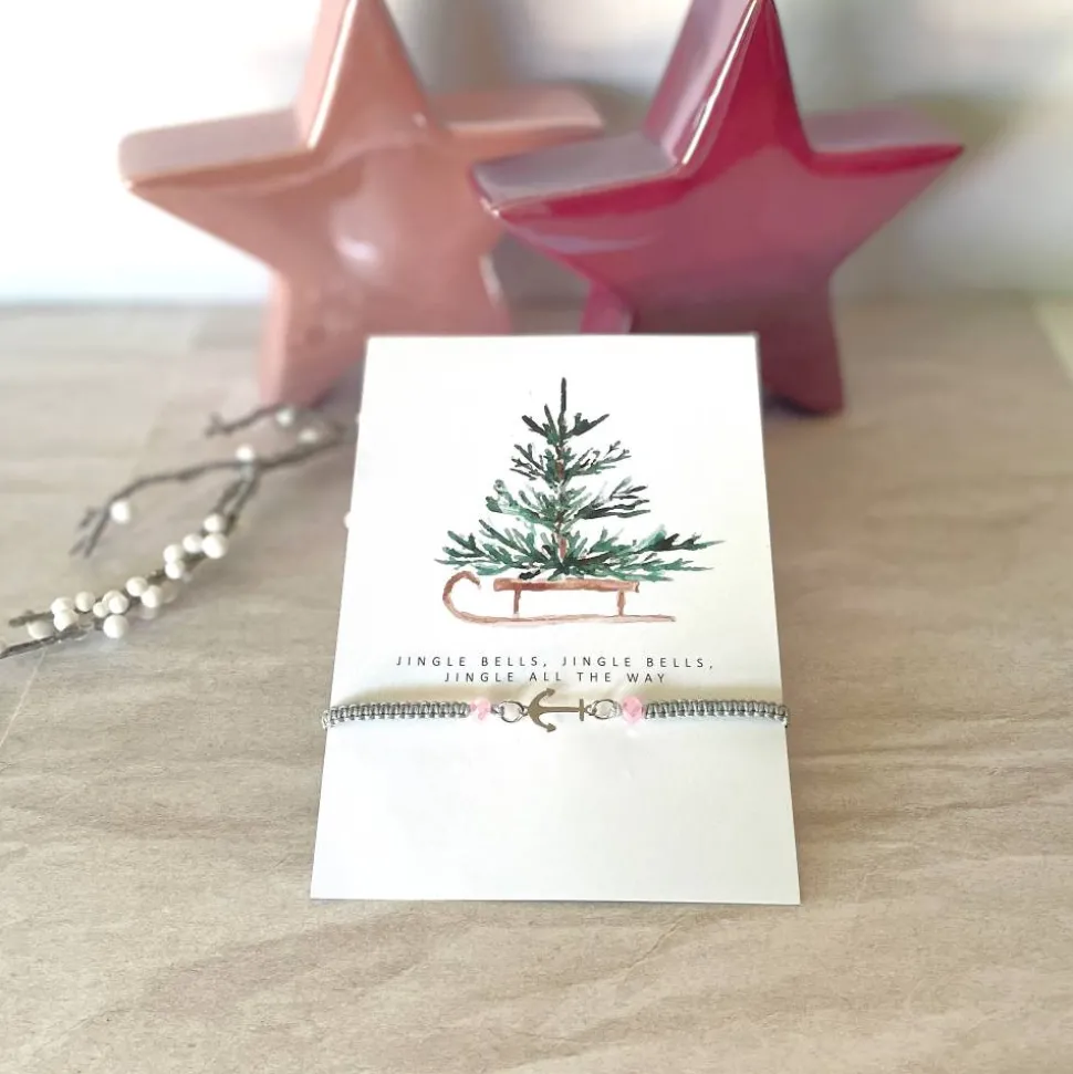 Bei diesem wunderschönen Armband wurde ein Anker-Element in Silber verwendet, Länge ca. 1,6 cm. Eingefaßt wird der Anker von zwei Glasschliffperlen in Rose. Das Armband hat einen Schiebeverschluß.