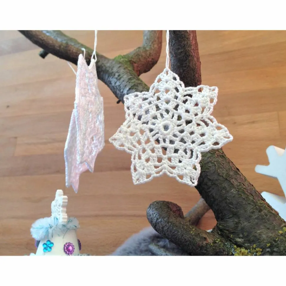Aus dünnem Baumwollgarn von Hand gehäkelt.