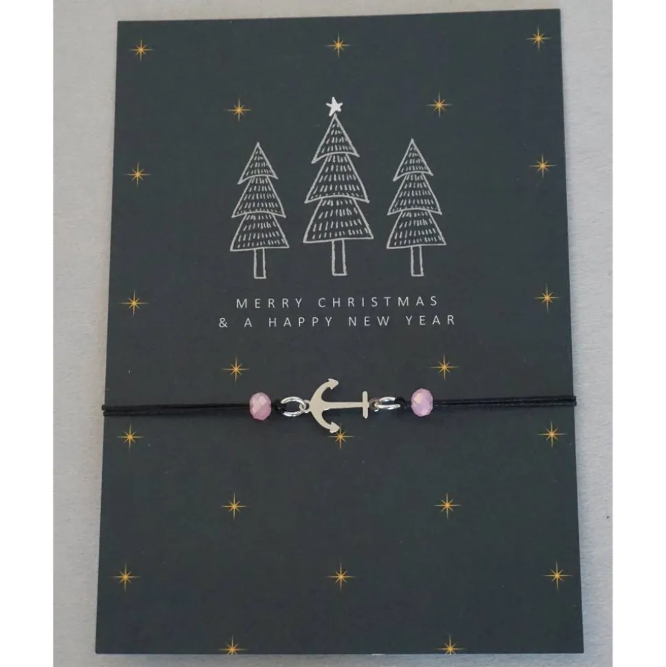 Bei diesem wunderschönen Armband wurde ein Anker-Element in Silber verwendet, Länge ca. 1,6 cm. Eingefaßt wird der Anker von zwei Glasschliffperlen in Rosé. Das Armband hat einen Schiebeverschluß.