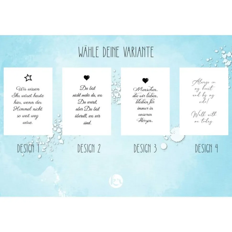 Individuelle Anfertigung: Sende dein hochauflösendes, hochformatiges Foto im JPG-Format per Nachricht oder E-Mail. Du kannst Wünsche zu Bildausschnitt oder Schwarzweiß-Umwandlung angeben, damit dein Memorial genau so wird, wie du es dir vorstellst.