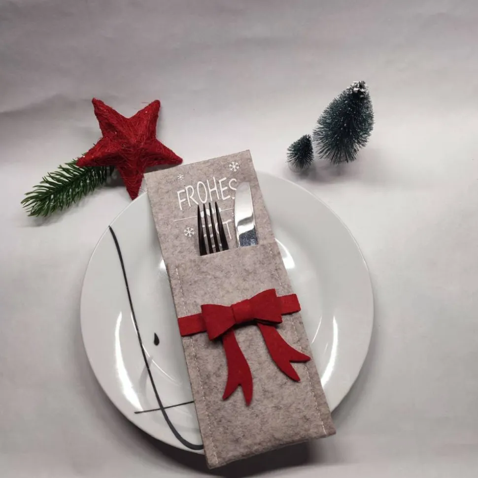 Bringe festliche Stimmung auf deinen Esstisch! Unsere liebevoll handgefertigteBestecktasche aus hochwertigem Filz ist die perfekte Ergänzung für deineWeihnachtsdekoration.