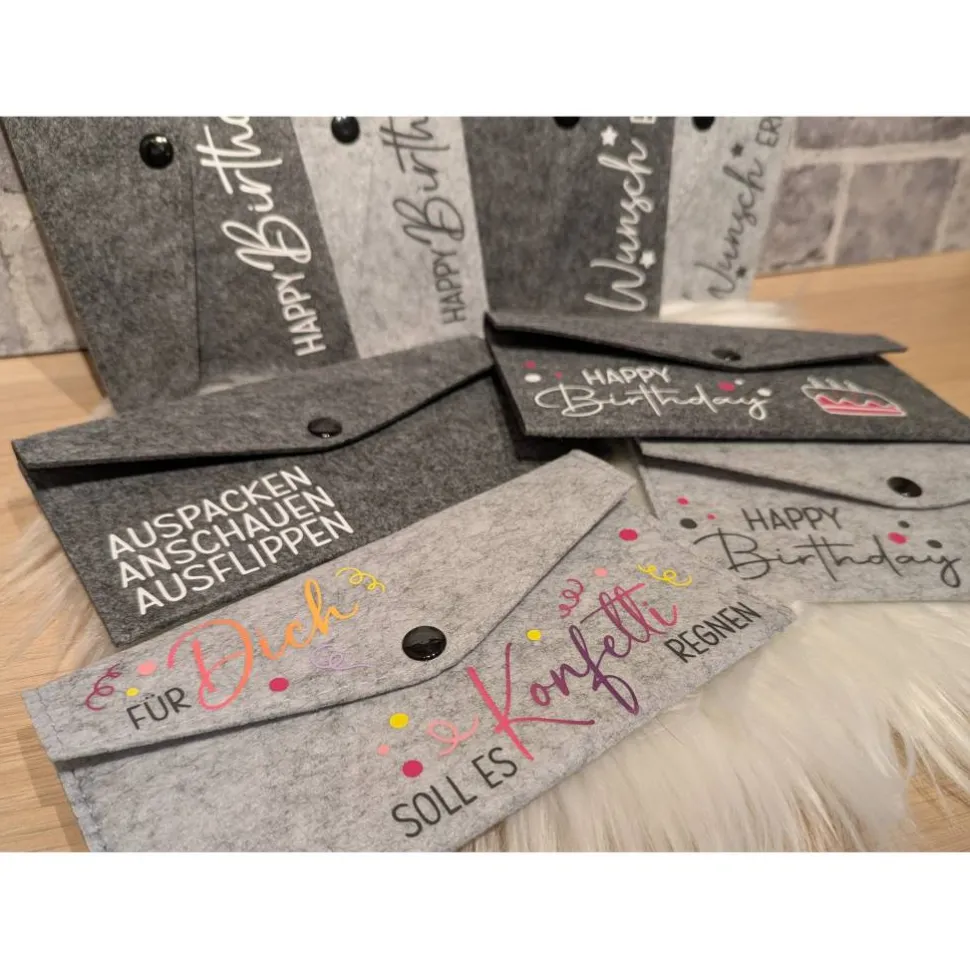 Du suchst eine stilvolle und persönliche Geschenkverpackung für dein Geldgeschenk oder einen Gutschein? Unser Filz-Geldgeschenk Umschlag im eleganten Briefumschlag-Design verwandelt jedes Präsent in eine liebevolle Aufmerksamkeit. Perfekt geeignet für Geburtstage, besondere Anlässe oder als kleine Überraschung – mit diesem Umschlag bereitest du beim Auspacken garantiert Freude.