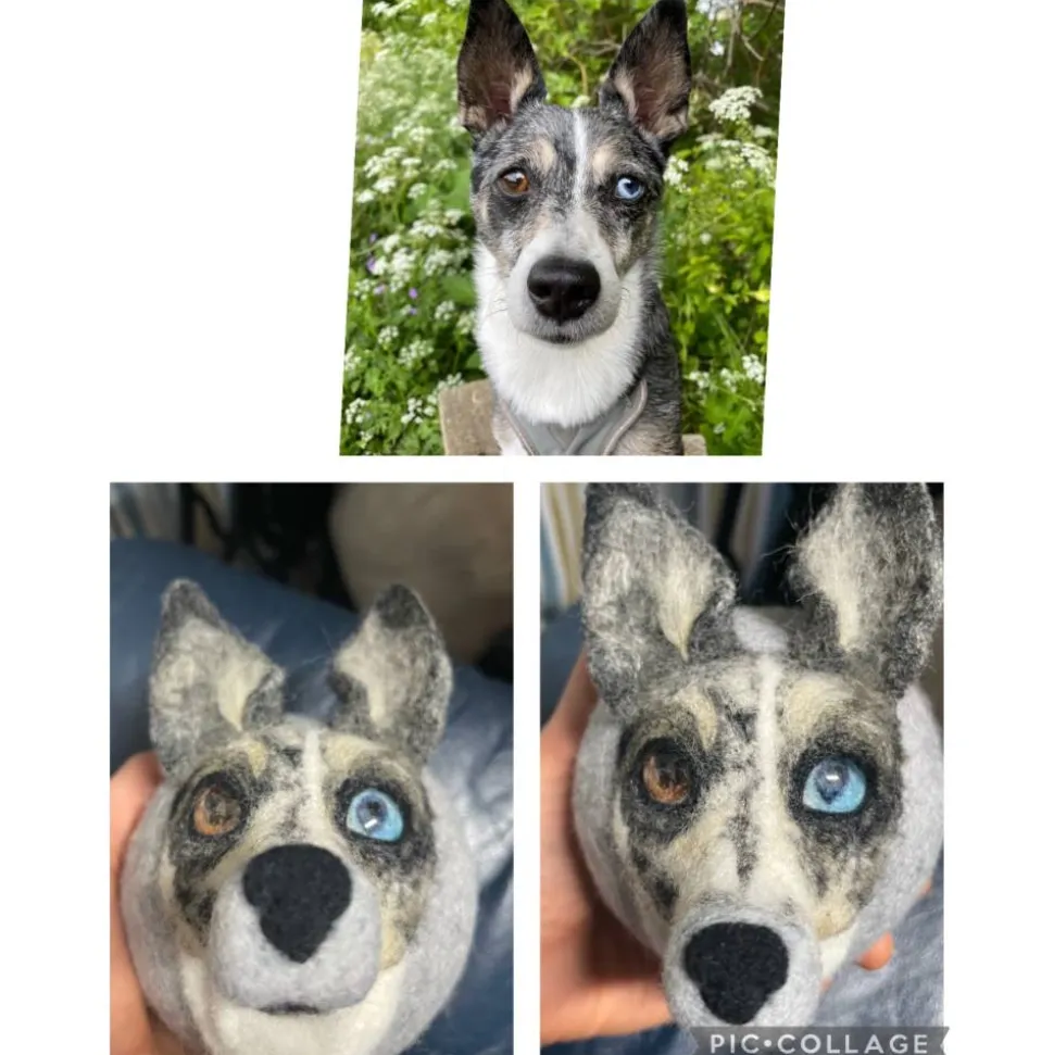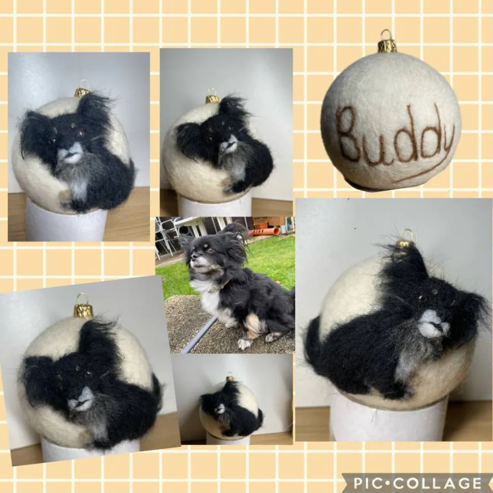 Filzkugel mit Tierporträt 3-D Porträt Tierabbildung