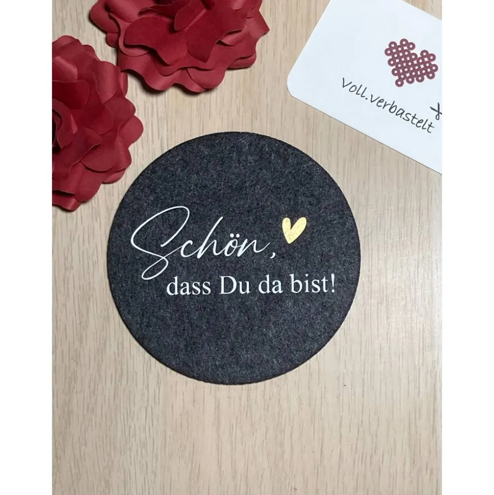Die Filzuntersetzer und Folien werden von mir zugekauft. Die Gestaltung erfolgt durch mich. Solltet Ihr den Untersetzer als Namenskarte verwenden wollen, ist eine doppelseitige Gestaltung sehr gerne möglich. Schaut Euch hierfür bitte meinen folgenden Artikel an: