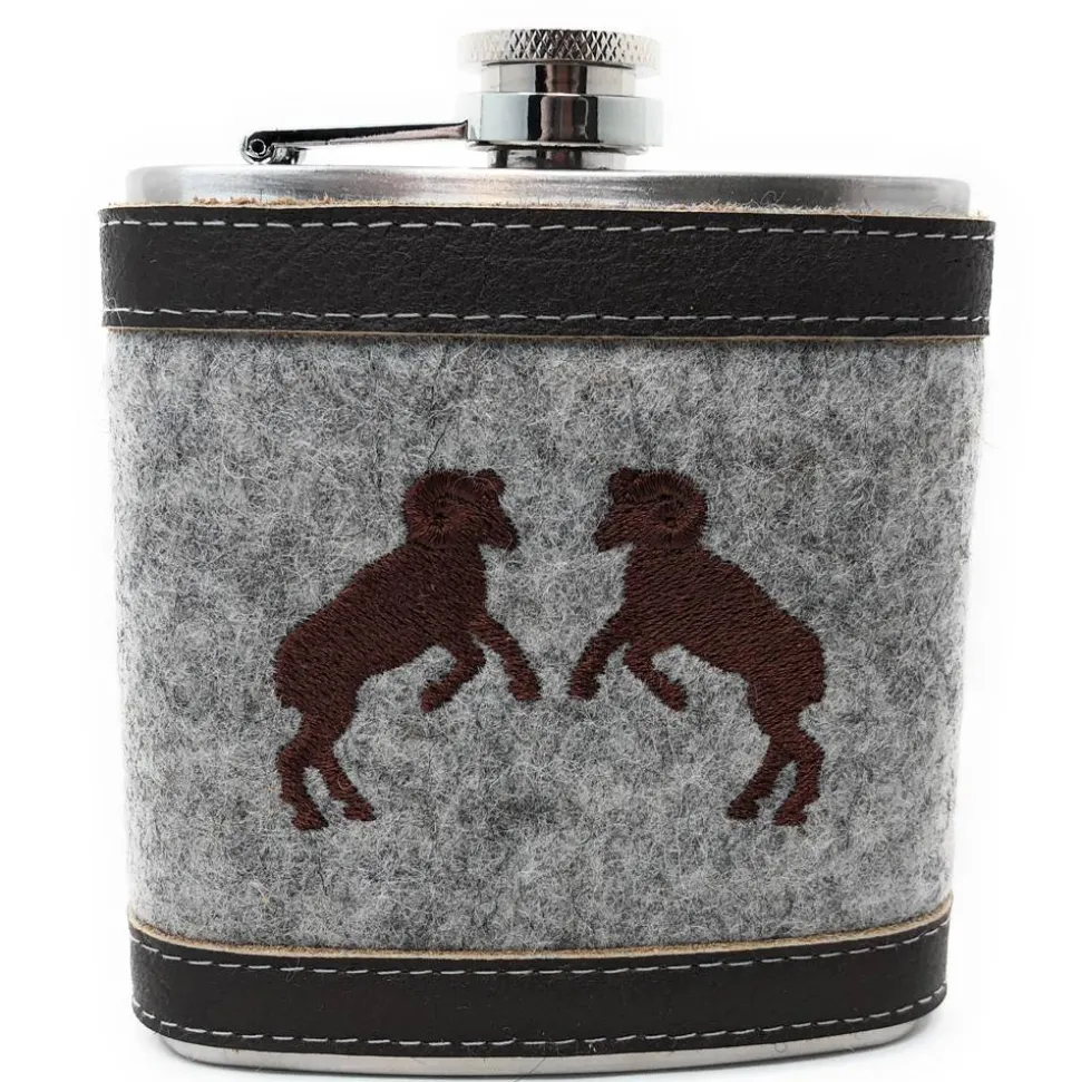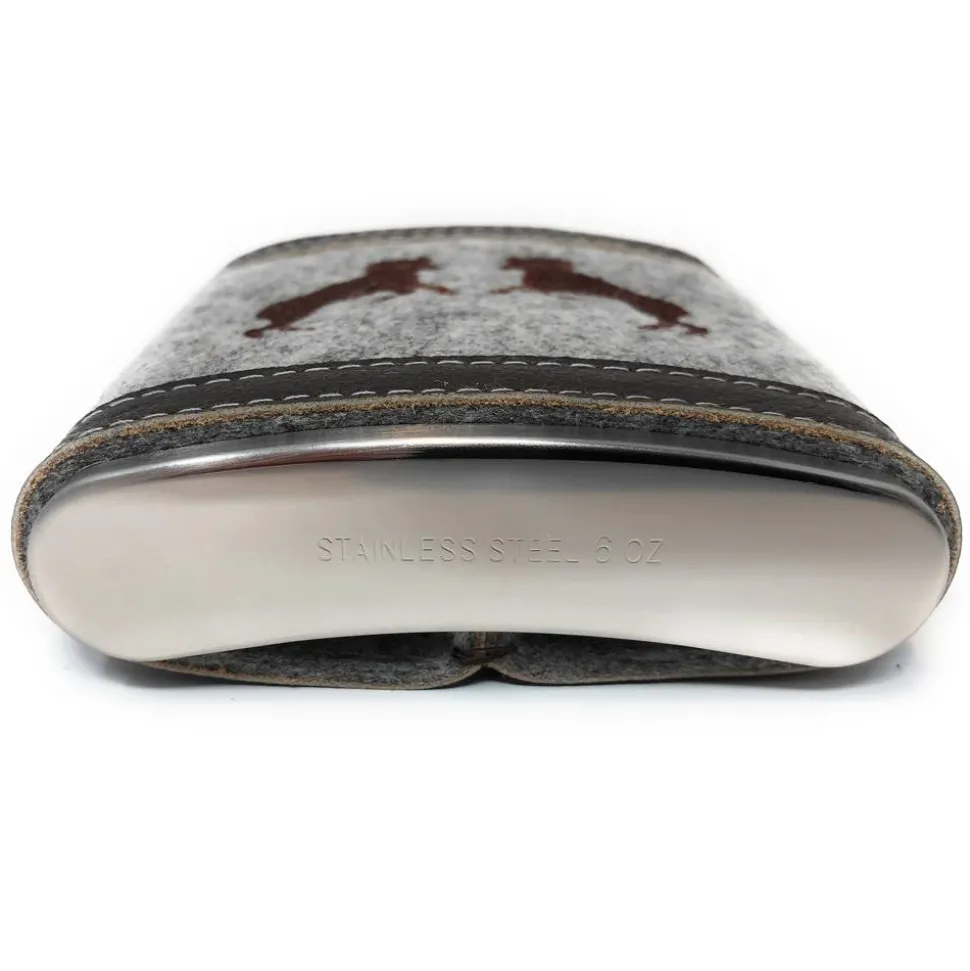 Der Flachmann besteht aus Edelstahl und hat ein Fassungsvermögen von ca. 180 ml (6 oz).