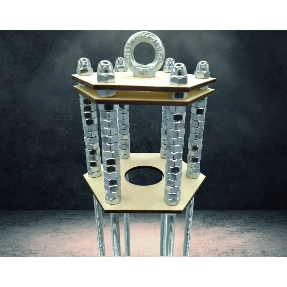 ● Der Flaschenkäfig ist aus lasergeschnittenen Holzplatten und robusten Gewindestangen gefertigt. Achte darauf, den Käfig auf einer stabilen, ebenen Fläche zu platzieren.