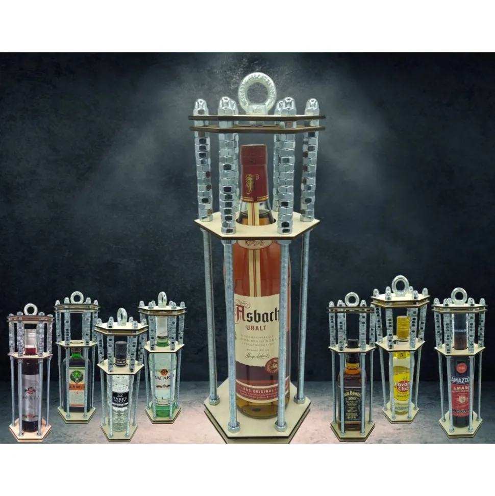 Du erhältst ihn als vormontierten DIY-Bausatz: Einfach deine Wunschflasche einsetzen, Muttern aufschrauben – fertig ist das Geschenk mit Aha-Effekt!