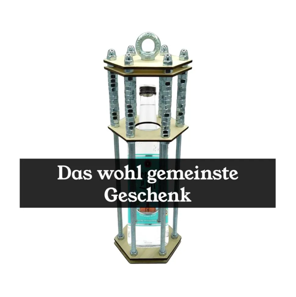 Jeder Flaschenkäfig wird von GET YOUR BOXX UG aus lasergeschnittenen Holzplatten, Gewindestangen und über 120 Muttern gefertigt. Das macht ihn nicht nur zu einem besonderen Männergeschenk, sondern auch besonders langlebig und stabil. Die Montage ist kinderleicht: Der Käfig kommt vormontiert – du setzt nur noch deine Flasche ein und schraubst die Muttern auf. So kannst du den Käfig immer wieder neu befüllen und weiterverschenken.