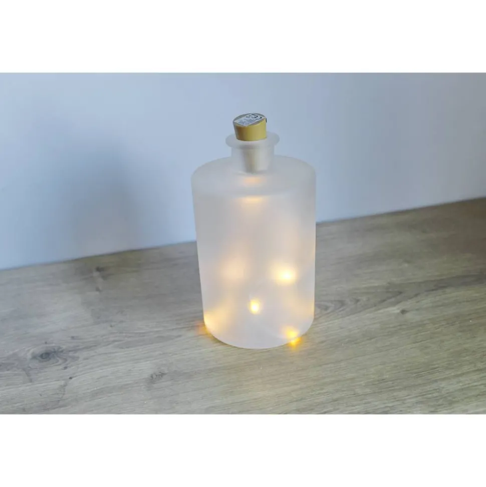 Die Beleuchtung der Lichtflasche steckt im Korken und wird mit 3 Knopfzellen-Batterien betrieben. Kein lästiges Kabel mehr, das unschön im Raum hängt und keine Abhängigkeit von einer Steckdose.