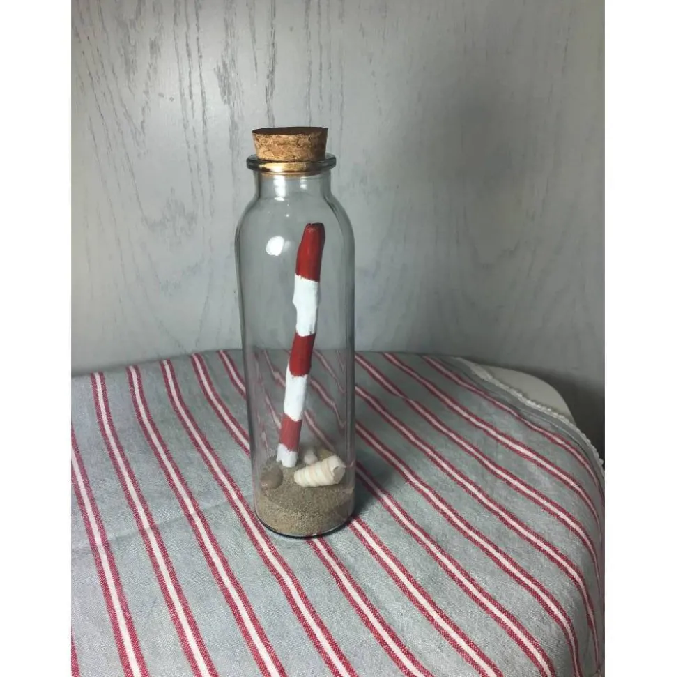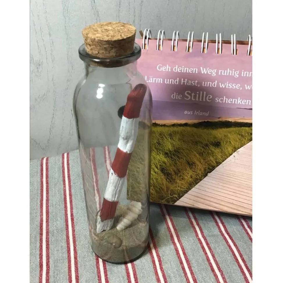 Ein Treibholz Stück vom Bodensee, italienischer Sand und zwei Kieselsteine machen diese Flasche zu einer maritimen Deko!
