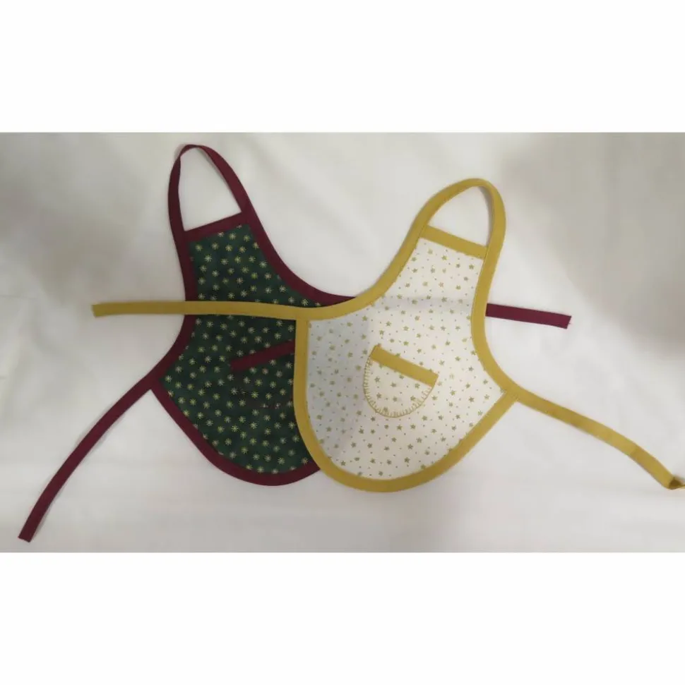 Die Grundfarbe ist grün oder beige, bedruckt mit goldenen Sternen, eingefasst entweder mit senfgelben oder weinrotem Schrägband.