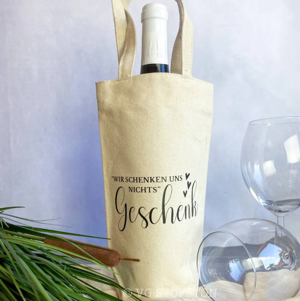 Eine nachhaltige Flaschentasche aus Stoff, die Geschenk und Verpackung zugleich ist – dekorativ, langlebig und umweltfreundlich.