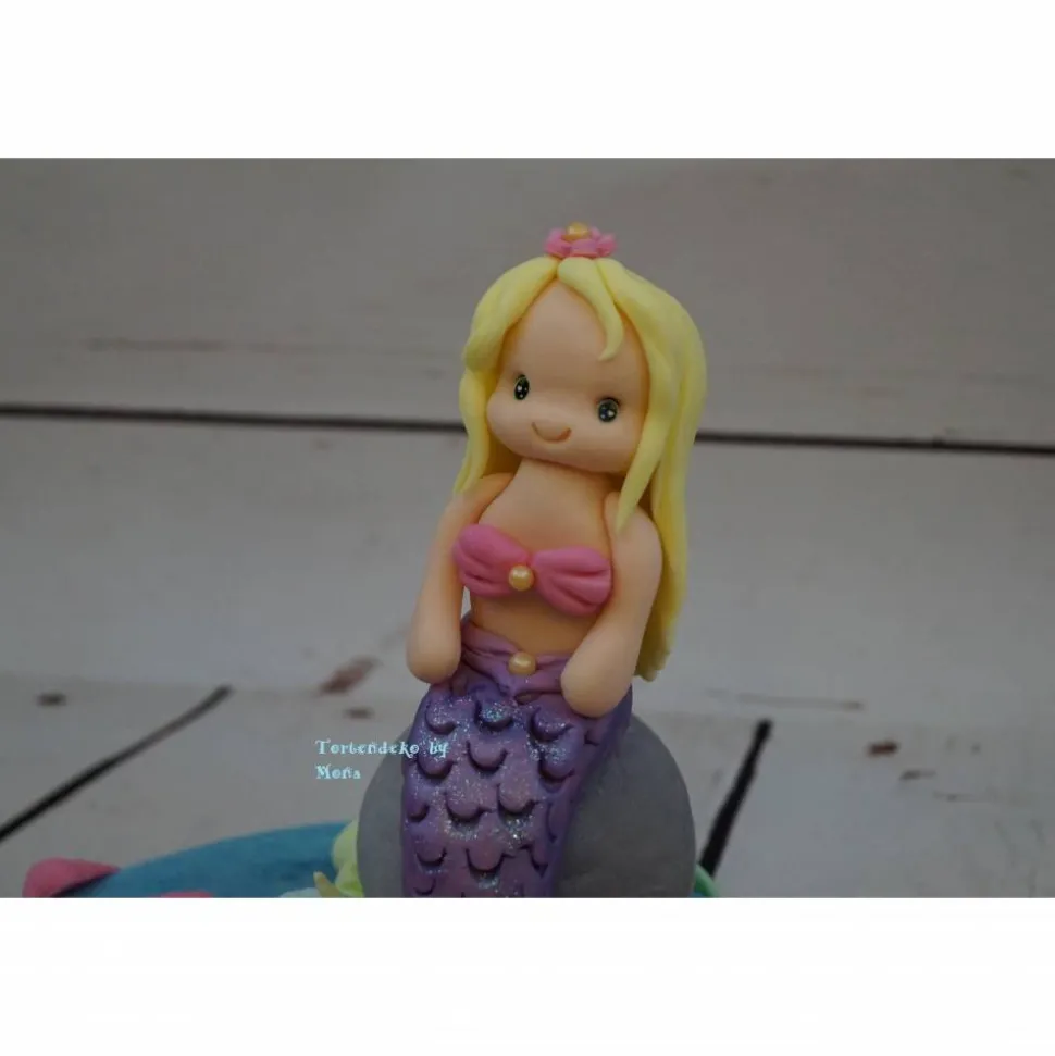 Eine Tortendeko für eine Meerjungfrauen Torte , da werden die kleine Mädchen große Augen machen und sich sehr drüber freuen, wenn diese Meerjungfrau auf ihre Torte sitzt. Sie können natürlich aus verschiedenen Varianten, Farben wählen. Sie können auch wählen, ob Sie auf den Topper sitzen soll oder nur auf den Stein. Durchmesser des Tortendummys ( Styropor) ist 20 cm.