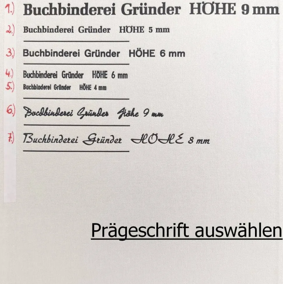 – Prägeschrift auswählen, siehe Foto, Nummer angeben (pro Zeile ist eine Schrift möglich, jede Zeile kann eine andere Schrift haben)