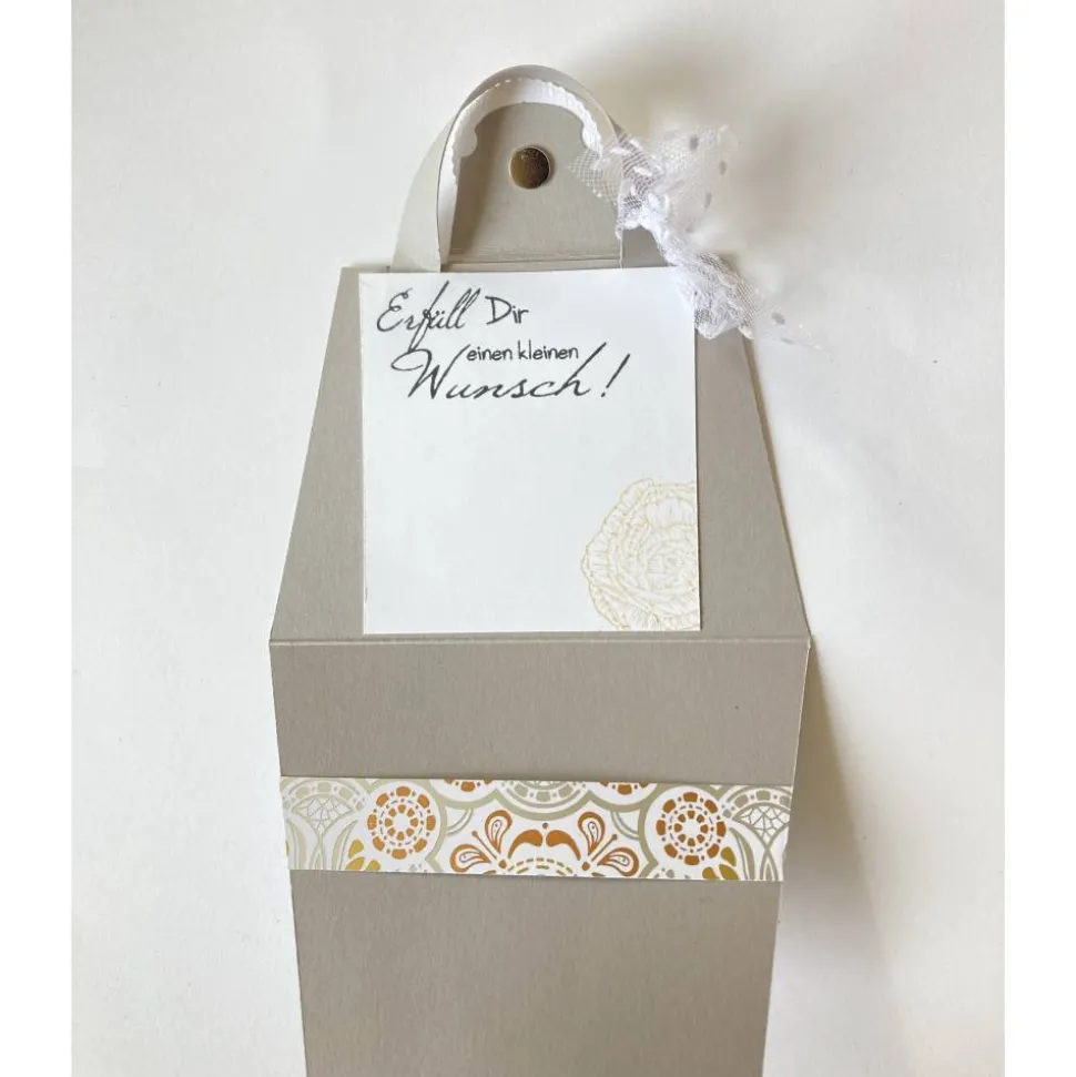 Klappt man die Karte auf, erscheint auf der Innenseite der Karte der Stempelspruch: Erfüll Dir eine kleinen Wunsch!
