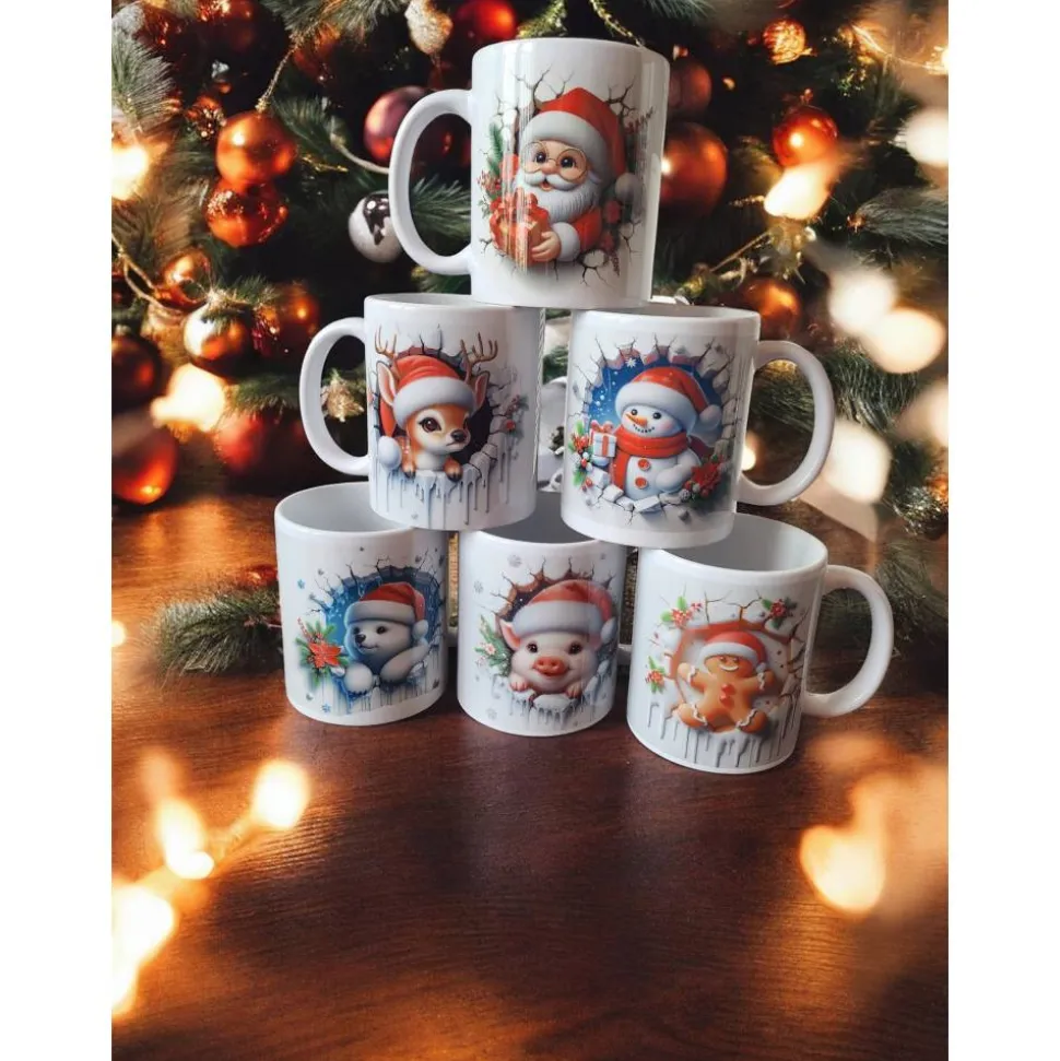 Machen Sie die Feiertage noch gemütlicher mit unserer bezaubernden Weihnachtstassen-Kollektion! Jede Tasse ist ein kleines Kunstwerk und zeigt ein niedliches, festliches Motiv, das scheinbar aus einer Schneewand bricht – perfekt, um Ihre Morgenroutine oder den Kaffee am Nachmittag in der Weihnachtszeit zu versüßen.