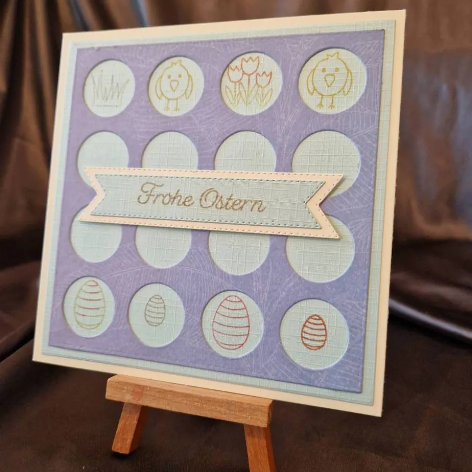 Als Schriftzug wurde der Text “ Frohe Ostern “ gestempelt.